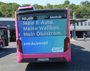 - Großflächige Werbeanbringung auf Rumpf, einem Teil der Fensterfläche, Dachkranz und Heck (sowohl auf Solobus als auch auf Gelenkbus möglich)
